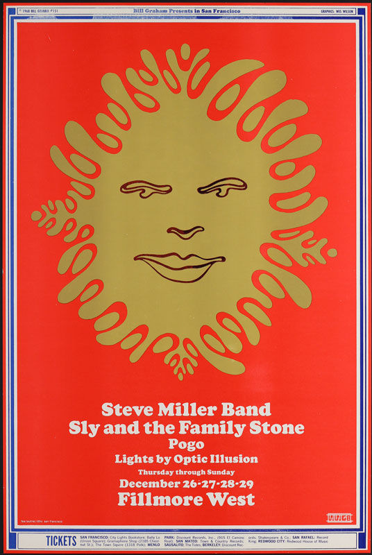 BG 151-1 Sly Stone Steve Miller Wes Wilson 1968 Fillmore Concert Poster